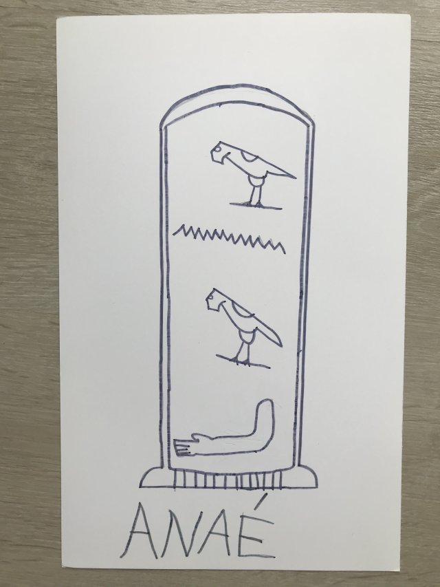 Productions arts visuels hiéroglyphes Dimanche 14 juin 2020, par Pascale Miel , popularité : 18% Vie de classe | Ci-joint un autre exemple d’alphabet incluant le "e" Cartouche d’Anaé
